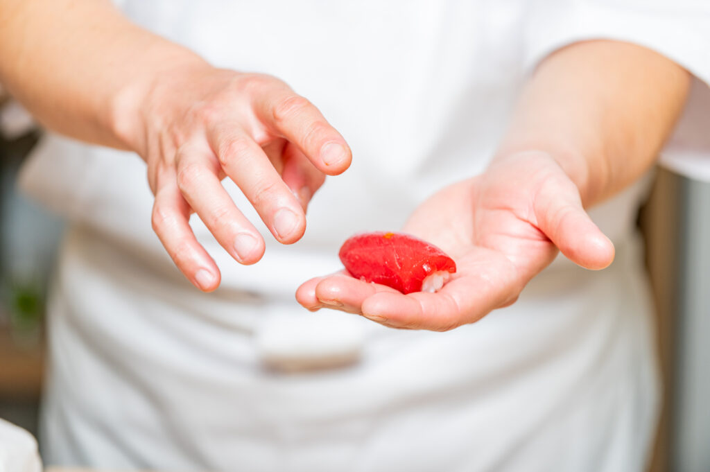 一貫を握る手さばき、カウンター越しの会話、木の香り、照明の柔らかさ──。