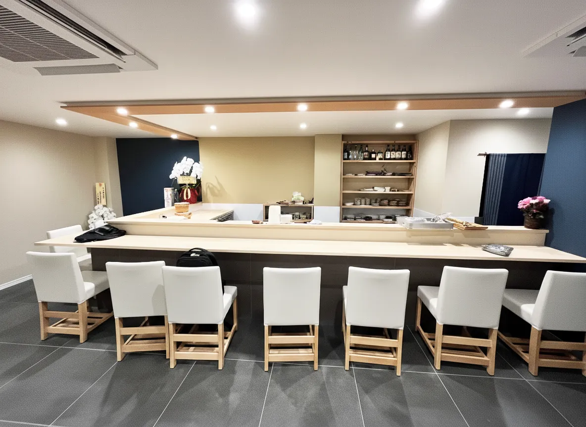 穏やかな間接照明に包まれた店内は、職人の手仕事が光る握りと、厳選された日本酒をゆっくりと味わえる舞台へと生まれ変わりました。 素材とディテールにこだわり抜いた空間で、訪れる人々が心から寛ぎ、記憶に残るひとときを過ごしていただけることを願っています。