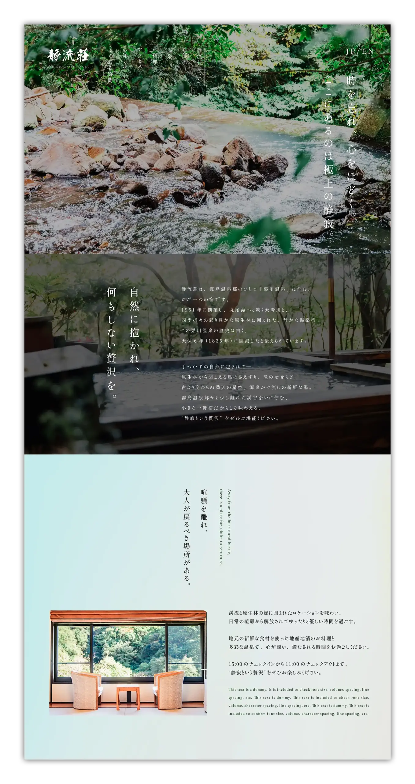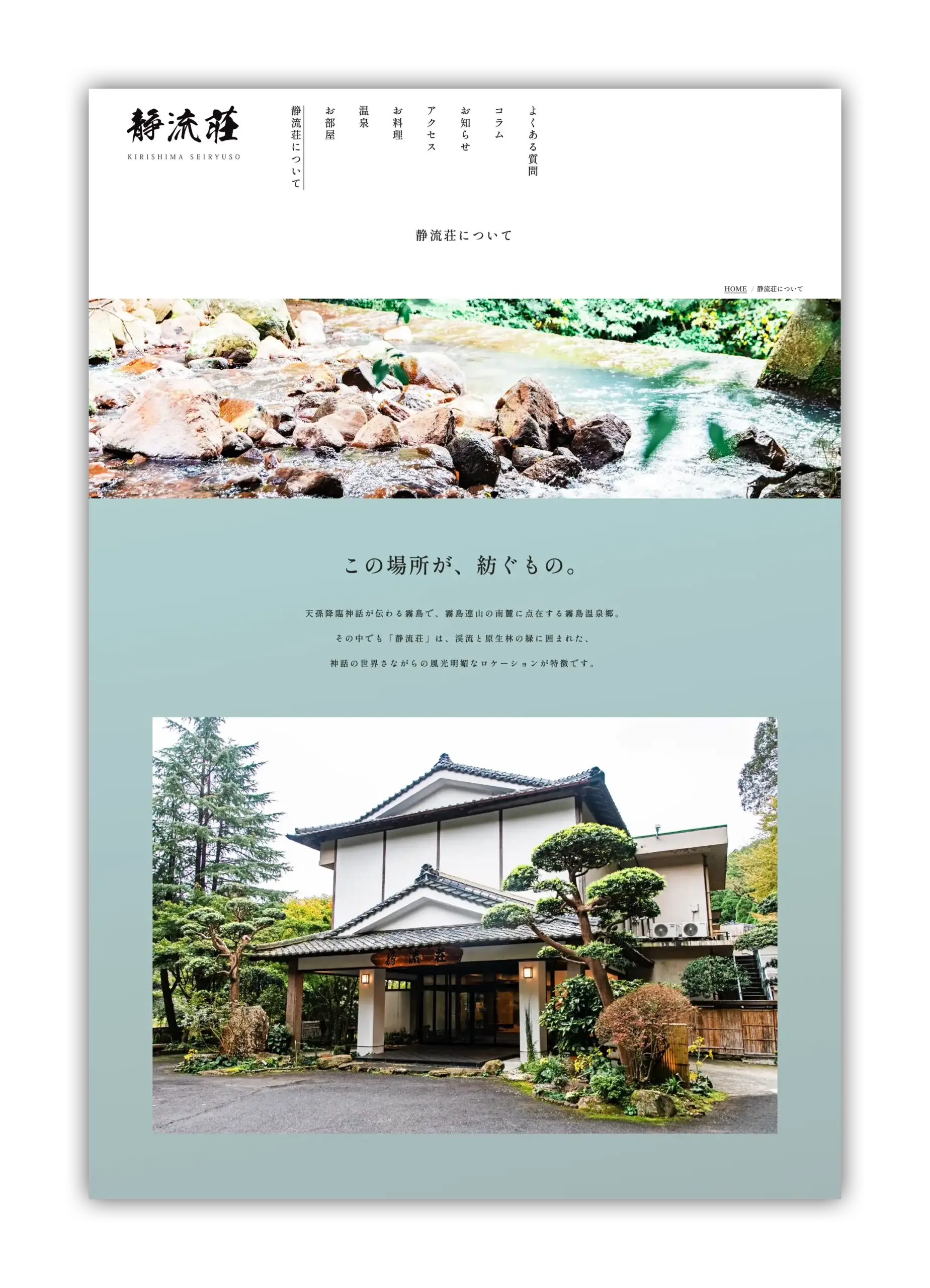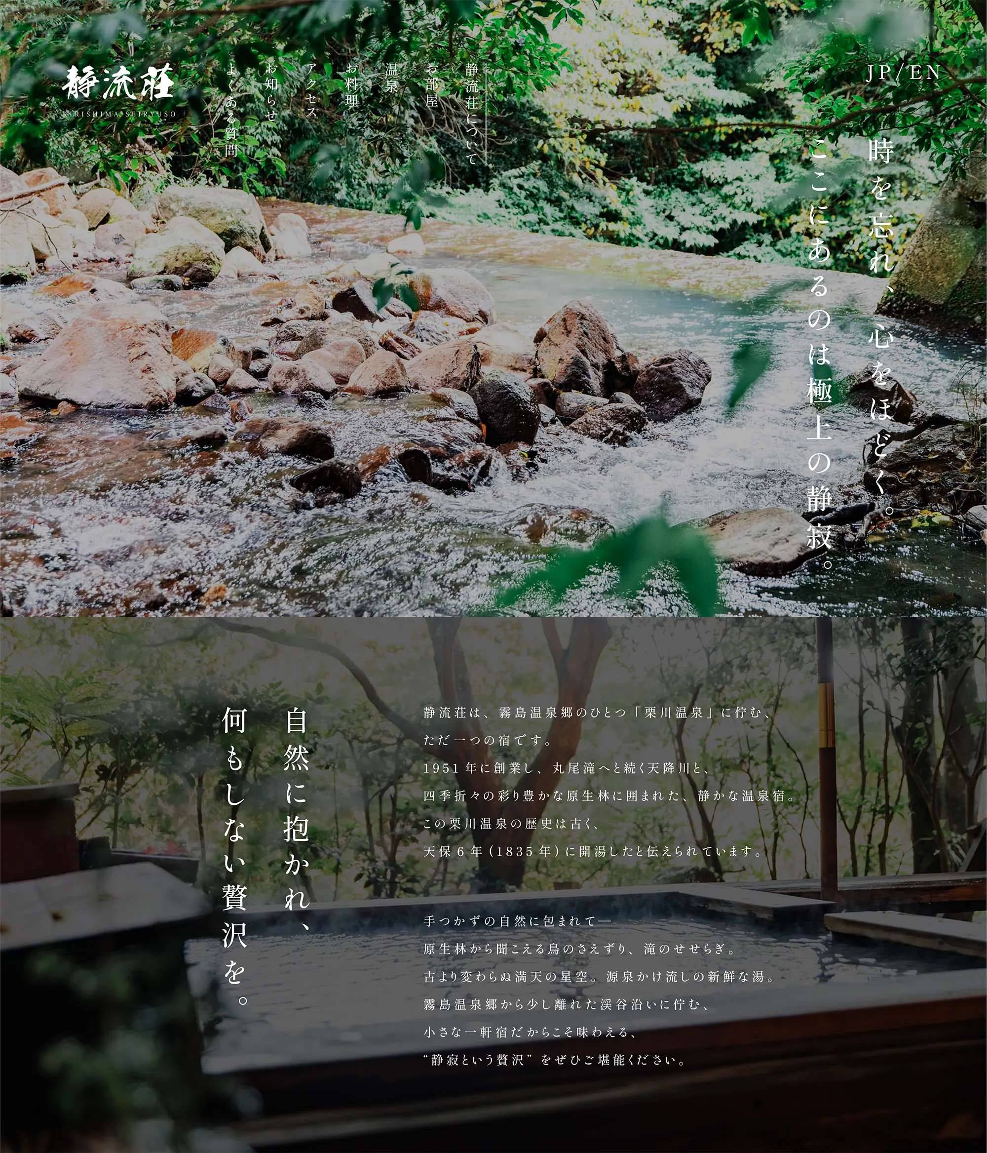 霧島の渓流と原生林に抱かれ、時を忘れる静寂を湛える宿──静流荘。その稀有な自然環境と宿の魅力を余すところなく伝えるべく、“何もしない贅沢”“自然に抱かれる宿泊体験”をコンセプトにプロジェクトを進めました。