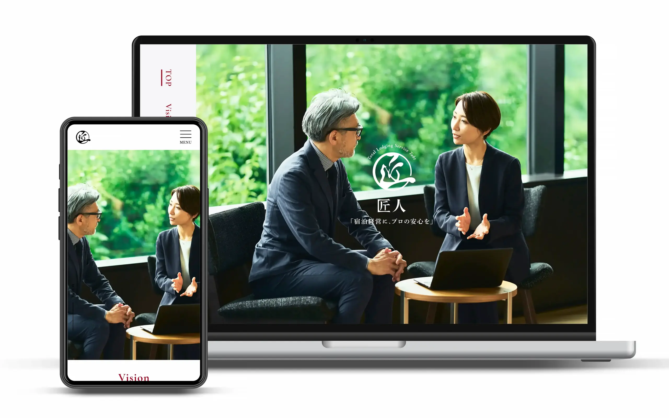 「匠人-Takt-」は、旅館・ホテル経営に特化したトータルサポートを行うサービスです。Rootforでは、その“専門性・信頼性・堅実性”を、Webサイト/ビジュアルアイデンティティーというかたちで具現化しました。